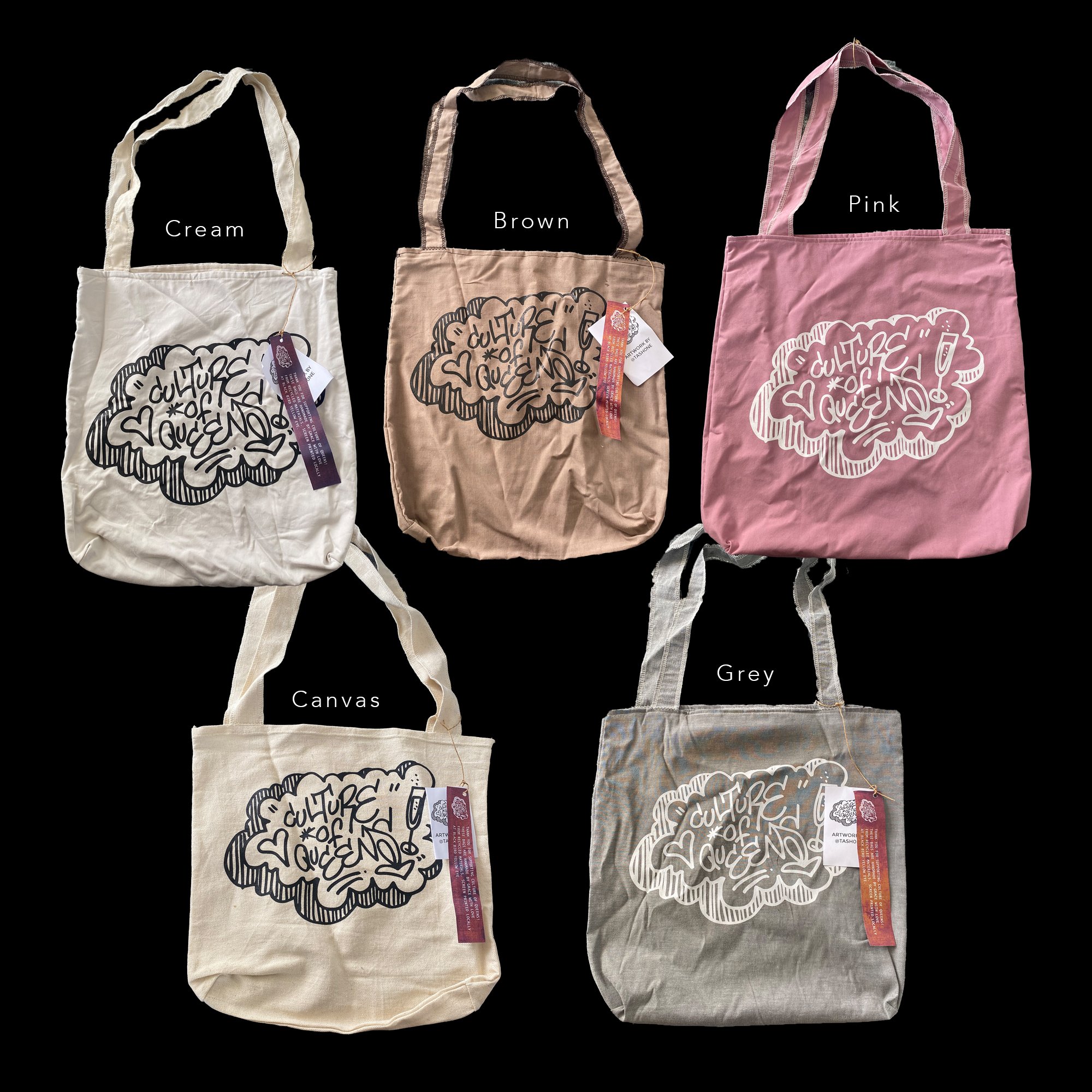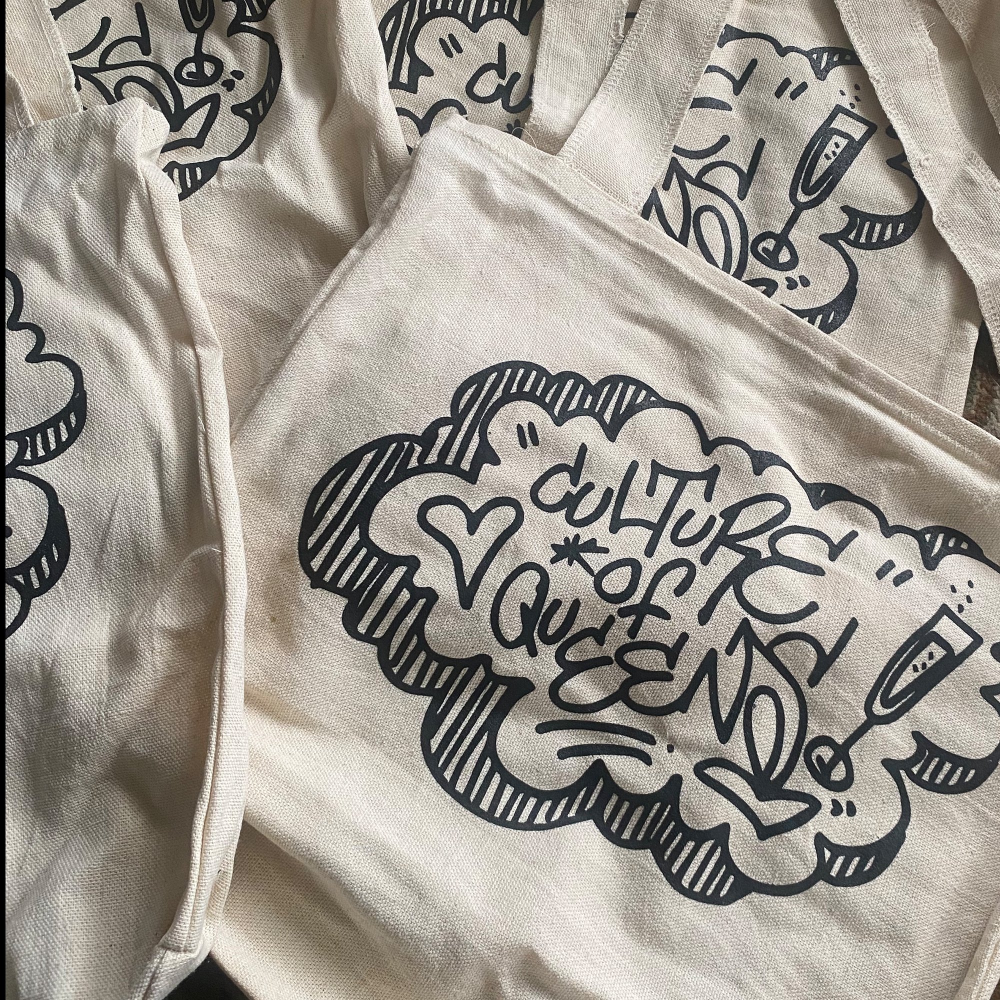 The artwork on the bags was designed by OG Queen Tash One and screen printed locally in Nipaluna by Black Bird Yellow Eye.